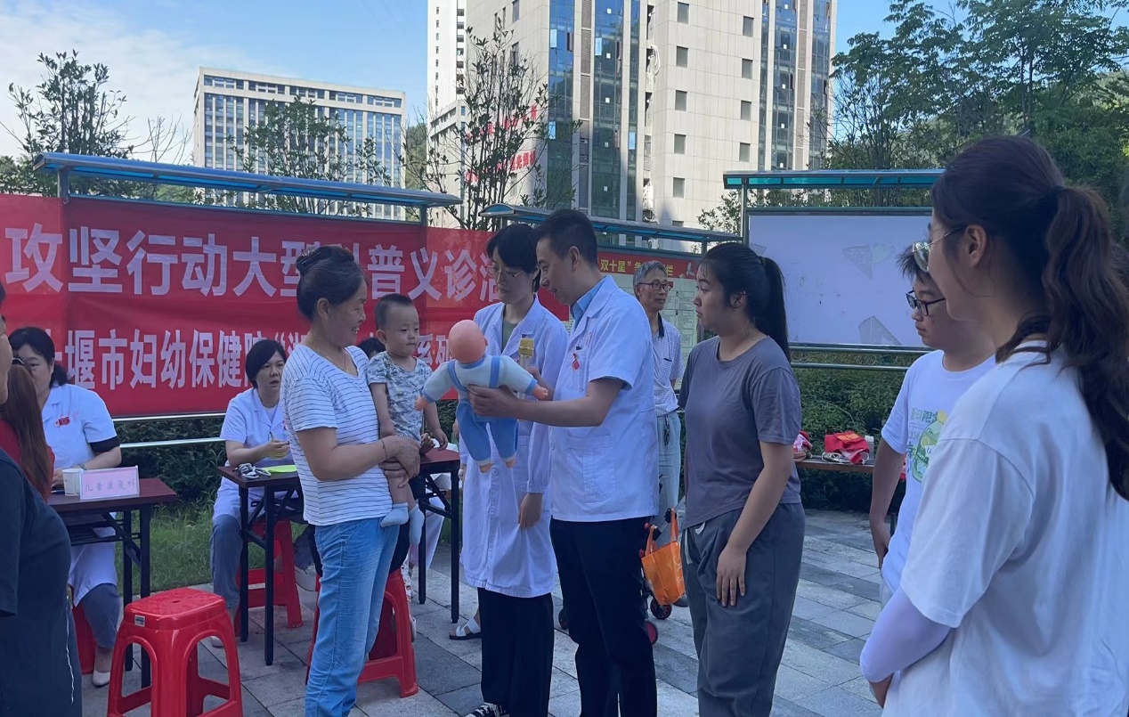 十堰市妇幼保健院的专家医疗团队携带听诊器,血压计,血糖仪,小型治疗仪器等,热情为居民诊治,免费送药,解答咨询同时发放健康教育宣传资料,落实“上医治未病”的理念。义诊专家们向群众现场讲解海姆立克急救法知识,宣传普及急诊急救知识;现场为群众讲解了《大学生留(回)堰就业创业政策》、持武当人才卡来我院就诊优惠政策等人才奖励激励政策,发放健康宣传等折页,普及高血压、糖尿病、脑卒中防治等健康知识,增强群众的防病意识,做到早预防、早发现、早治疗,引导群众科学就医。