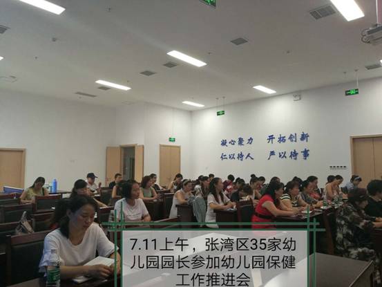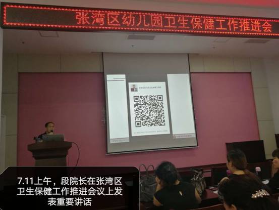 7月11日上午九时,张湾区幼儿园卫生保健工作推进会在西院区五楼会议室如期召开,这是继张湾区幼儿园卫生保健合格证验收后召开的一次工作推进会,会上张湾区妇幼保健中心叶芳主任和市妇幼保健院段全良副院长分别就此次会议目的,会后的具体要求作了讲话。强调各幼儿园要以此次推进会为新起点,对照专家指出的问题和对策做出相应的改进,并在一周后将改进结果上报区妇幼保健中心和市妇幼保健院儿保中心。