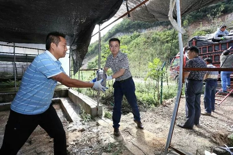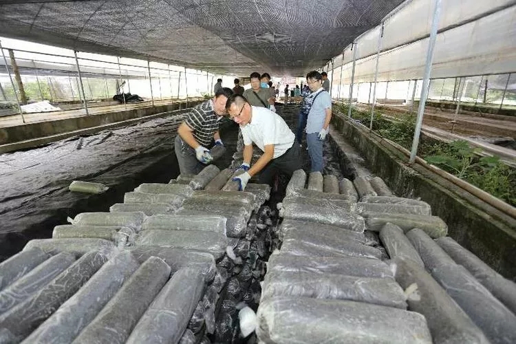 在该村香菇扶贫产业基地现场,当地村民正忙着从卡车上卸载,大家不由分说上前帮忙,有的爬上车顶负责搬运,有的排成长队负责传递菌棒。刚制成的菌棒温度很高,尽管大家带着防护手套,一阵阵滚烫的感觉还是不时传递到手掌,让人十分不适。但是现场所有人互相鼓励、比拼,没有一个人叫苦叫累。已是初秋,但当日艳阳高照、气温较高,十几分钟后,所有人的额头上都沁出了细细的汗珠。