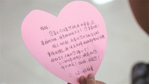 “妈妈,您每天除了要按时上班,还要照顾我和弟弟,您辛苦了。以后我保证改掉自己的坏习惯,认真学习,不再让您操心!妈妈,我爱您!”这是12岁的小程亲手在贺卡上写给妈妈的一段话,他告诉记者,这是今年妇女节他送给妈妈的礼物。
