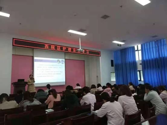 2月25日下午4点在西院区五楼会议室进行全院护理人员业务学习。此次业务学习主要有三个内容。1、《电子病历规范书写》,特邀请本部院区彭艳红护士长讲授。2、《输血安全》,由产科宋莉护师讲解。3、解读《患者十大安全目标》,授课妇科护士长谢芳老师。