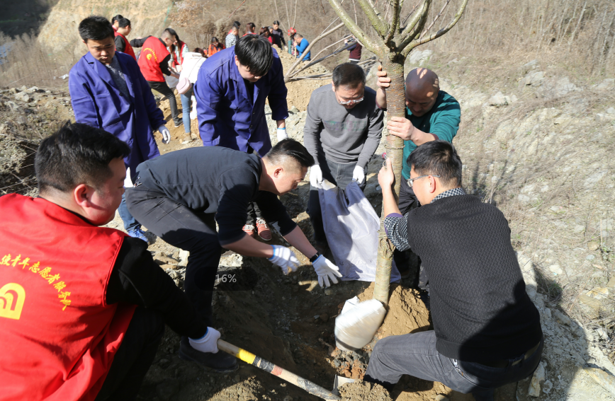 2019年3月12日上午,正值第41个植树节,院领导班子、行政后勤党总支全体党员、15名青年团员代表等40余人,在新院区后山绿化带举行了植树活动。植树活动按3-4人一组,领工具、拿树苗、选树坑、埋下许愿瓶。活动现场,青年团员们把对医院未来的美好心愿写在纸上放进许愿瓶中埋进土里,与院领导和同事们一同种下树苗,让自己的愿望和树苗一同成长。活动期间,大家热情高涨、干劲十足,有的挖树坑,有的搬运沙土,有的给树苗浇水,每个步骤都做的认真到位,人人忙得满头大汗,现场不时响起了欢声笑语。