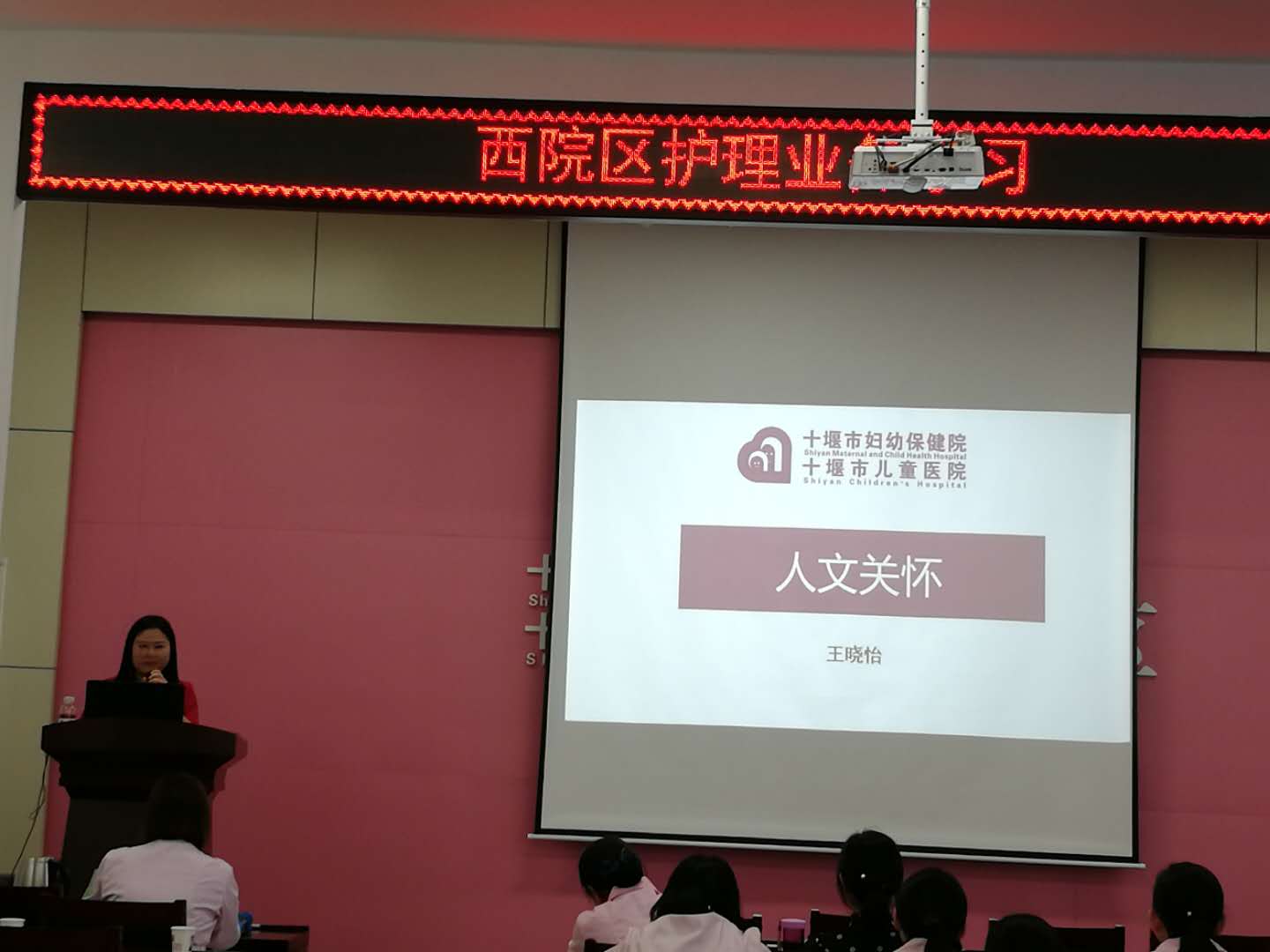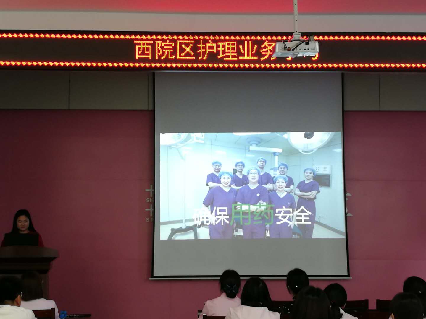 4月18日下午3:40,西院区全院业务学习在五楼会议室召开。本次学习共包括三个部分:一、观摩学习院“5.12”系列活动部分微视频展播;二、邀请本部手术室王晓怡护师为我们分享《人文关怀》 ;三、由产科常慧护士长带我们共同学习《常见护理风险的评估与防范》 。