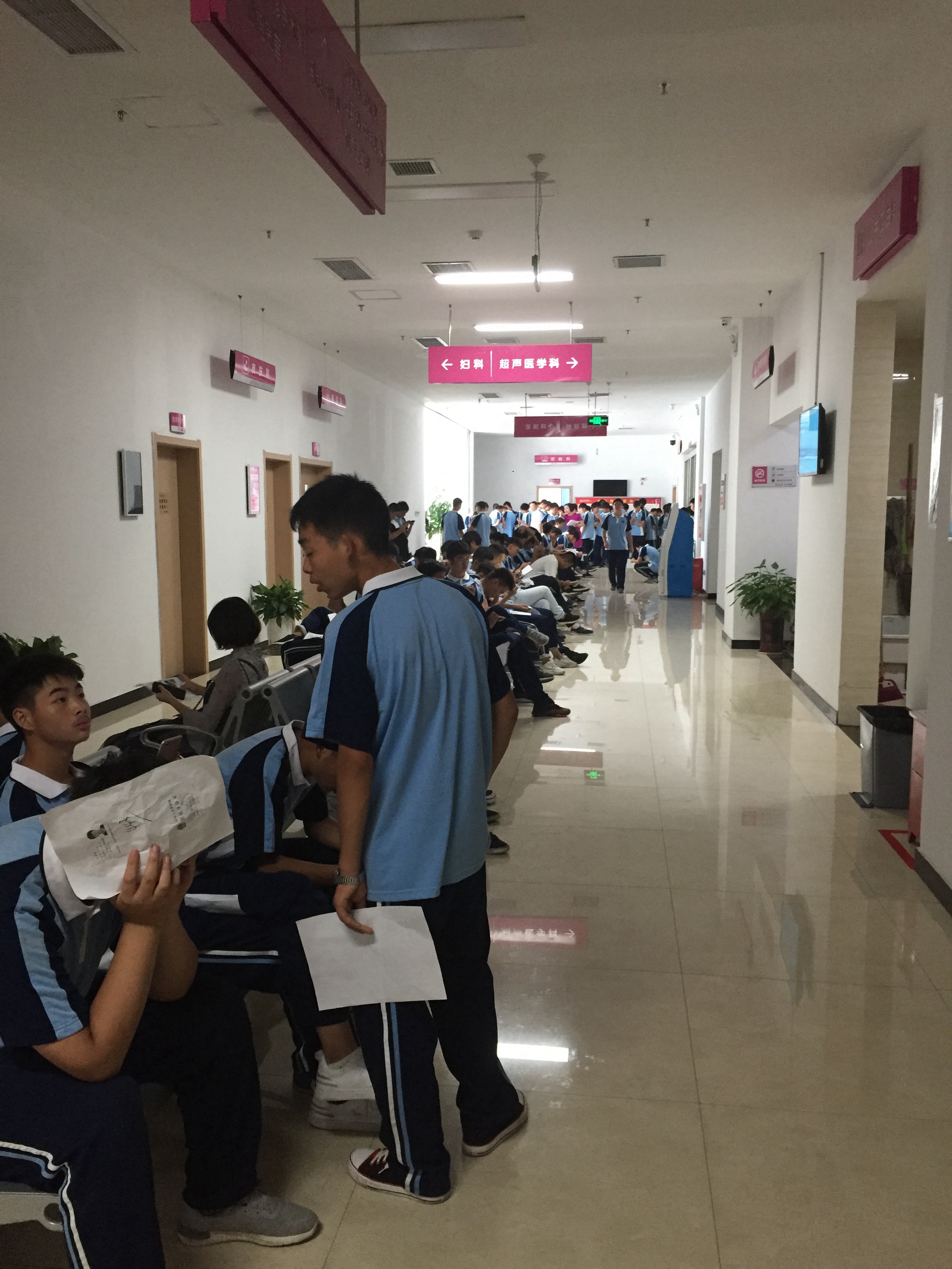 9月6号上午,西院区迎来湖北东风汽车技师学院的新生们进行入学体检。
