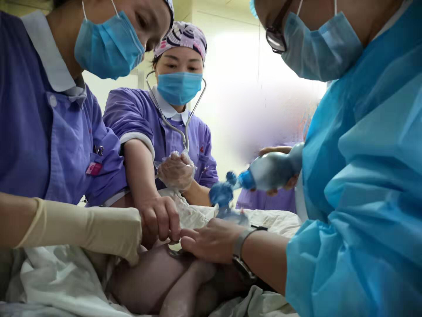 宝宝的娩出并没有让大家高高提起的心放下。新生儿科医生、产房助产士和麻醉科医生立即在早早备好的预热辐射台开始了对宝宝的急救。所幸宝宝情况较好,因为轻度窒息初步抢救后转入新生儿科接受进一步的治疗和监测。