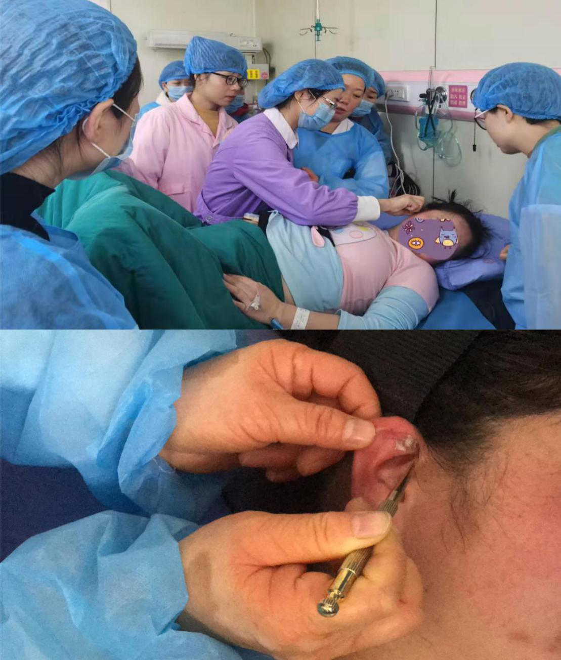 12月13日有幸请到浙江中医药大学附属第一医院产科护士长赵红梅为大家授课,赵红梅老师的《中医适宜技术在妇产科临床的应用》带大家进入神秘的中医世界,开拓了新视野,见证了祖国中医的博大精深。耳穴压豆,穴位按摩,艾灸疗法,中药沐足,穴位贴敷使中医技术和产科发展有机结合。在大家的诚恳邀请下,课后赵红梅护士长前往产房和产一病区为待产的两名产妇进行耳穴压豆阵痛操作,对我院助产士现场指导,详细讲解耳穴位置及帖穴镇痛方法,以及操作中注意事项。随行观摩的学员也都摩拳擦掌,虽然因时间关系和担心打扰产妇,学员们未能亲自动手进行操作,但大家都纷纷保留了赵老师的联系方式,表示以后有机会要做更多、更深入的学习和实践。两位产妇均在中午顺利分娩,阵痛效果得到产妇的认同和好评。