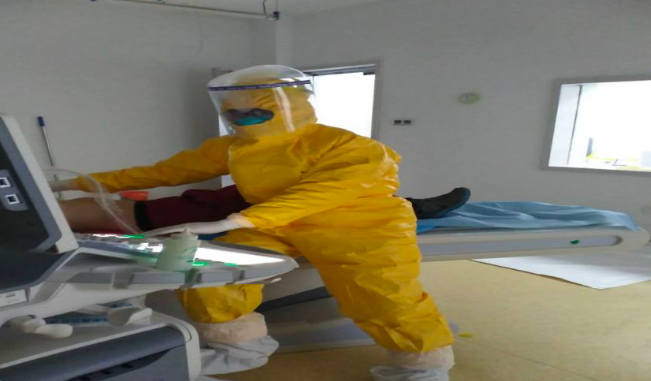 在第二救治医院,李明明像场外24小时待命的“排雷”专家,随时准备冲进隔离病房,用小小超声探头,排查险情。在隔离病房,李明明领教了防护服的厉害,呼吸不畅,浑身不透气,护目镜起雾,看不清字……整个人特别不好受!但这一切不适和难受都被超声报告出来那一刻,准确无误锁定病情的安心抚平了!